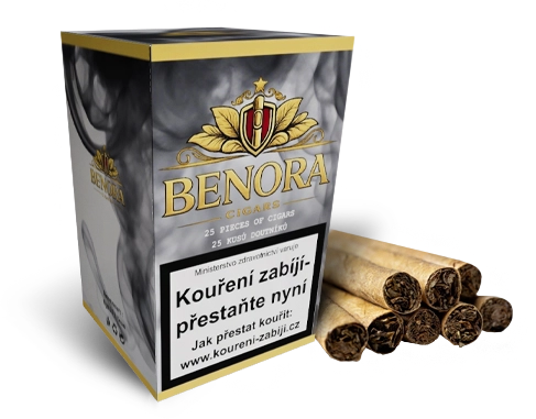 Nabízíme jediný, pečlivě vybraný produkt: doutníky Benora vyrobené z kvalitního tabáku Golden Virginia. Tento tabák zajišťuje jemnou, vyváženou chuť a příjemný kuřácký zážitek.